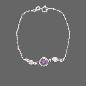Sparkling purple and pink cubic zirconia highlight this lightweight bracelet with sterling silver chain of alternating balls and round tubes. Bracelet includes a 925 tag.