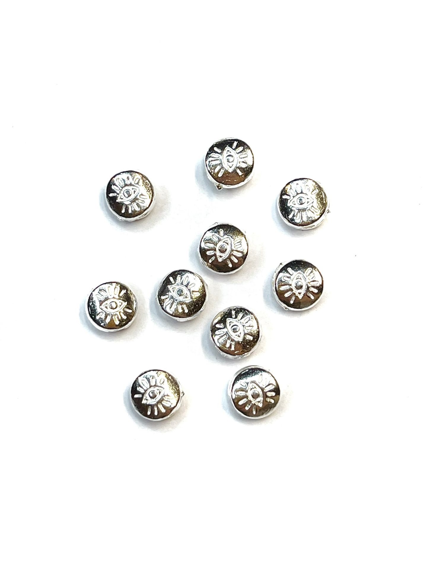 Metal Space Bead Eye 6mm Silver Plate x10