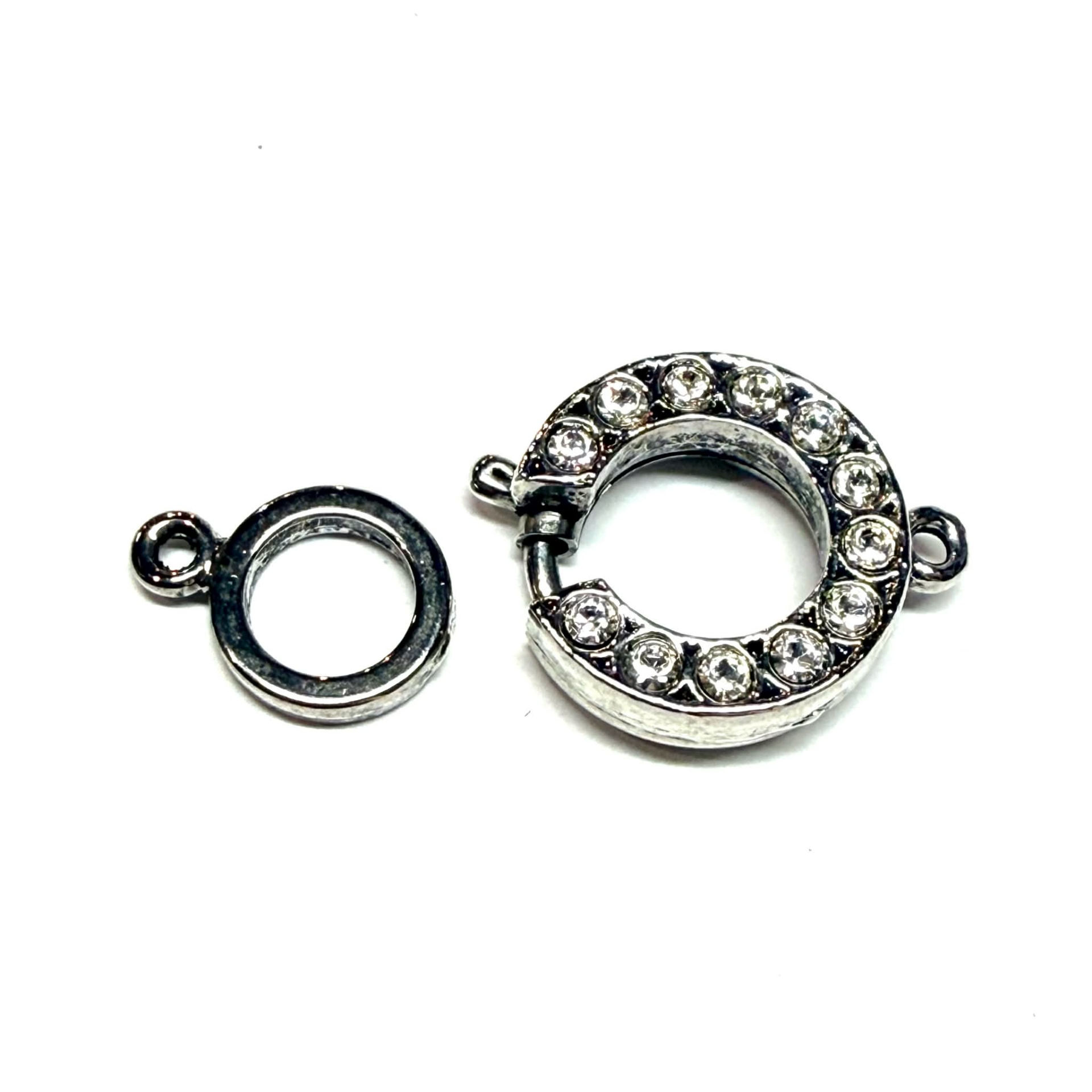 Neumann Crystallized Spring Clasp 15mm round Rhodium Plated x1