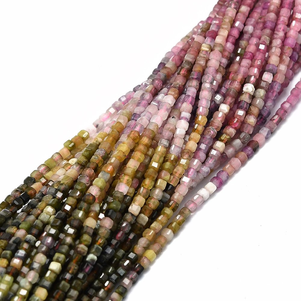 Tourmaline bead 2mm faceted cube x38cm