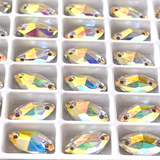 Embroidery Crystals 3223 Navette Sew-on flat 2-hole 12x6mm Crystal AB x1