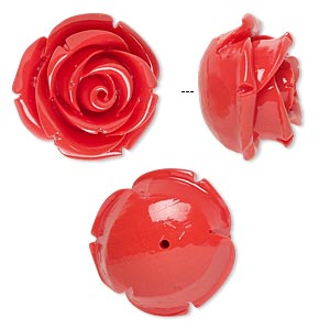 Resin bead 19x19mm half-drilled rose Red x1