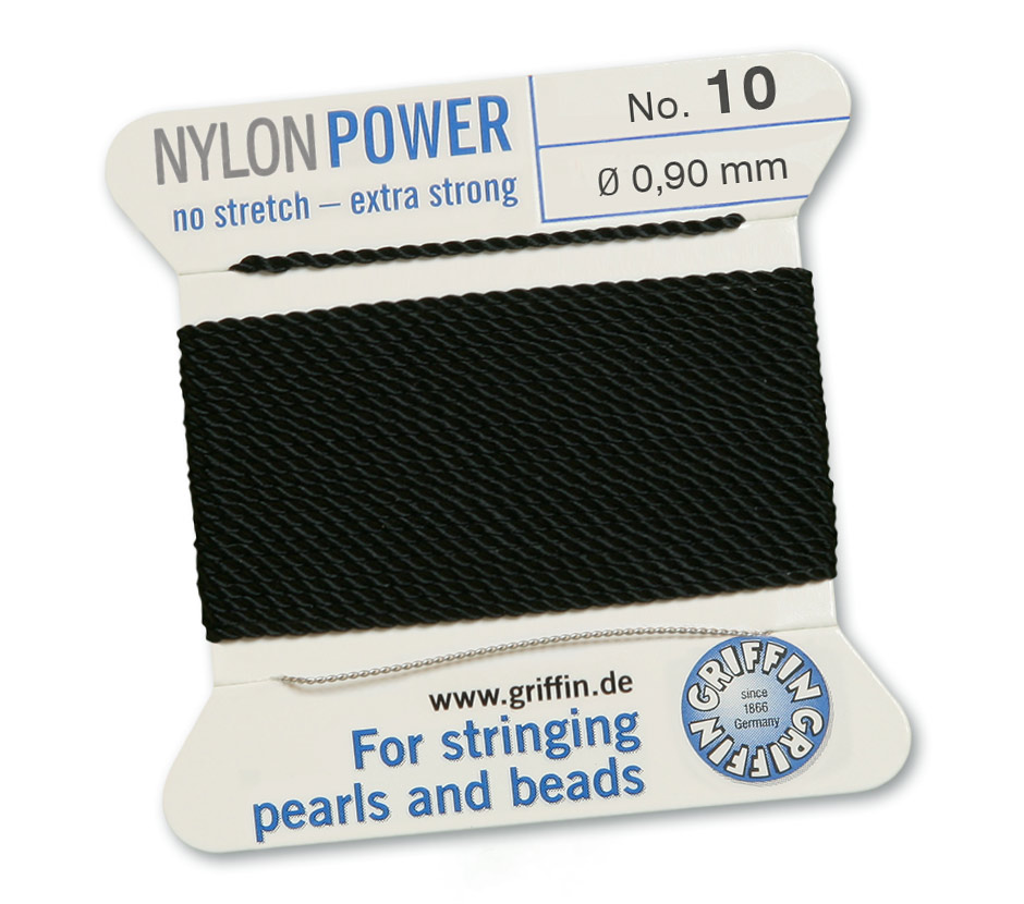 Griffin Nylon Beading Cord & Needle size #10 - 0.90mm Black x2mm