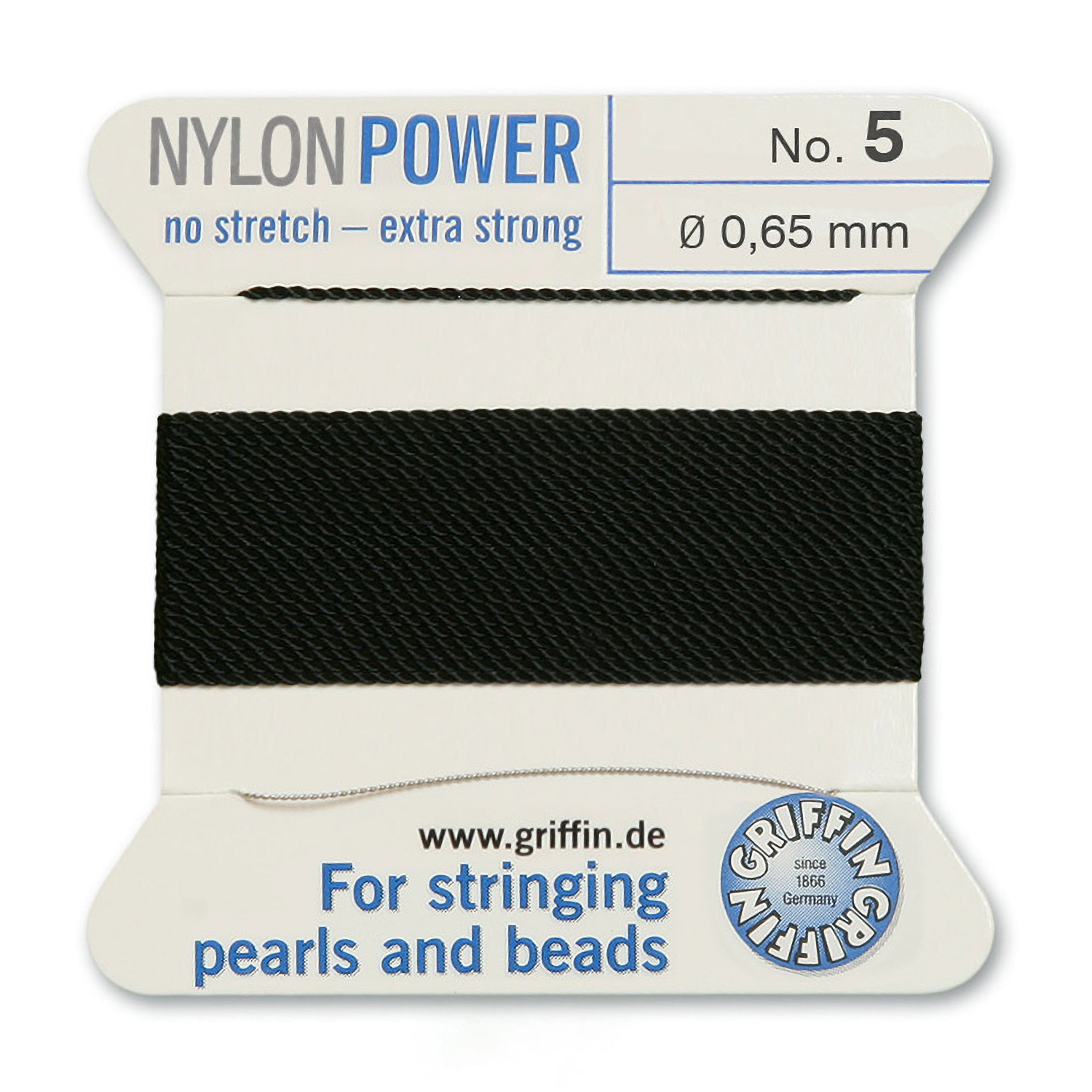 Griffin Nylon Beading Cord & Needle size #5 - 0.65mm Black x2mm